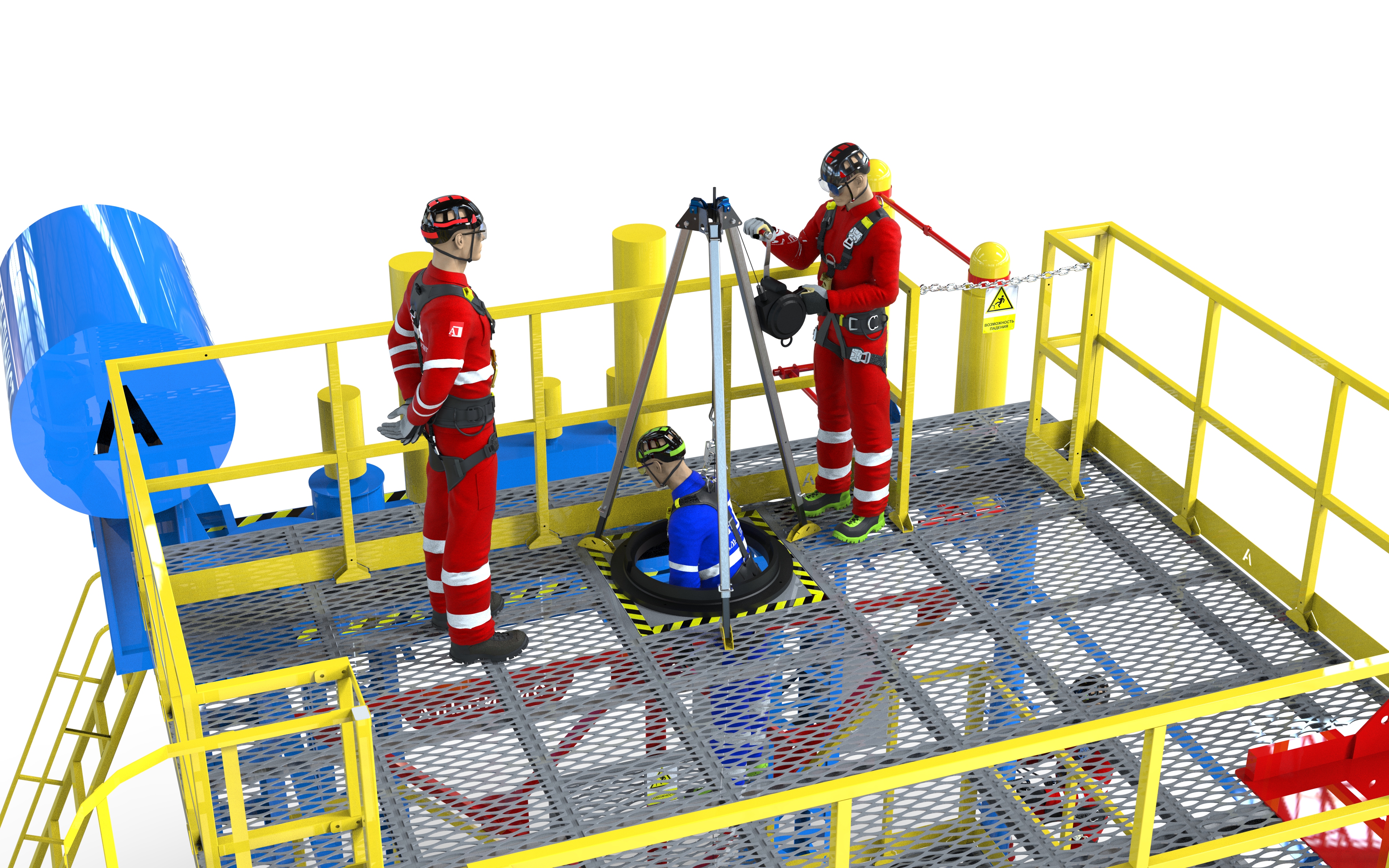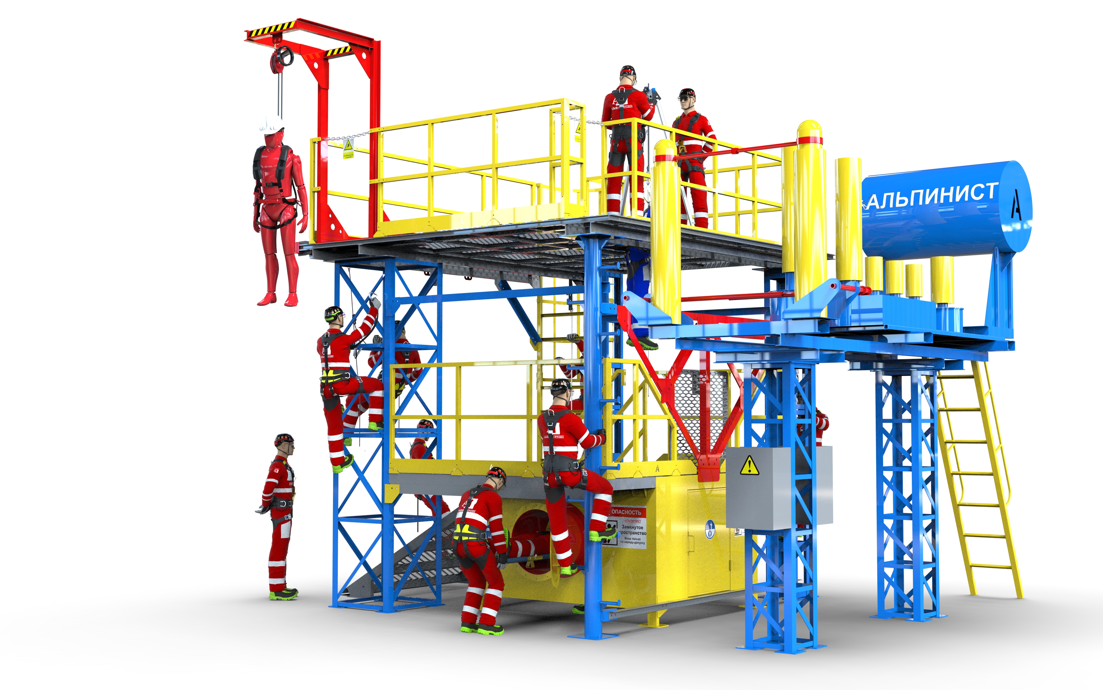На объекте установлен современный учебно-тренировочный полигон «Альпинист-03-07» для отработки навыков безопасной работы на высоте.