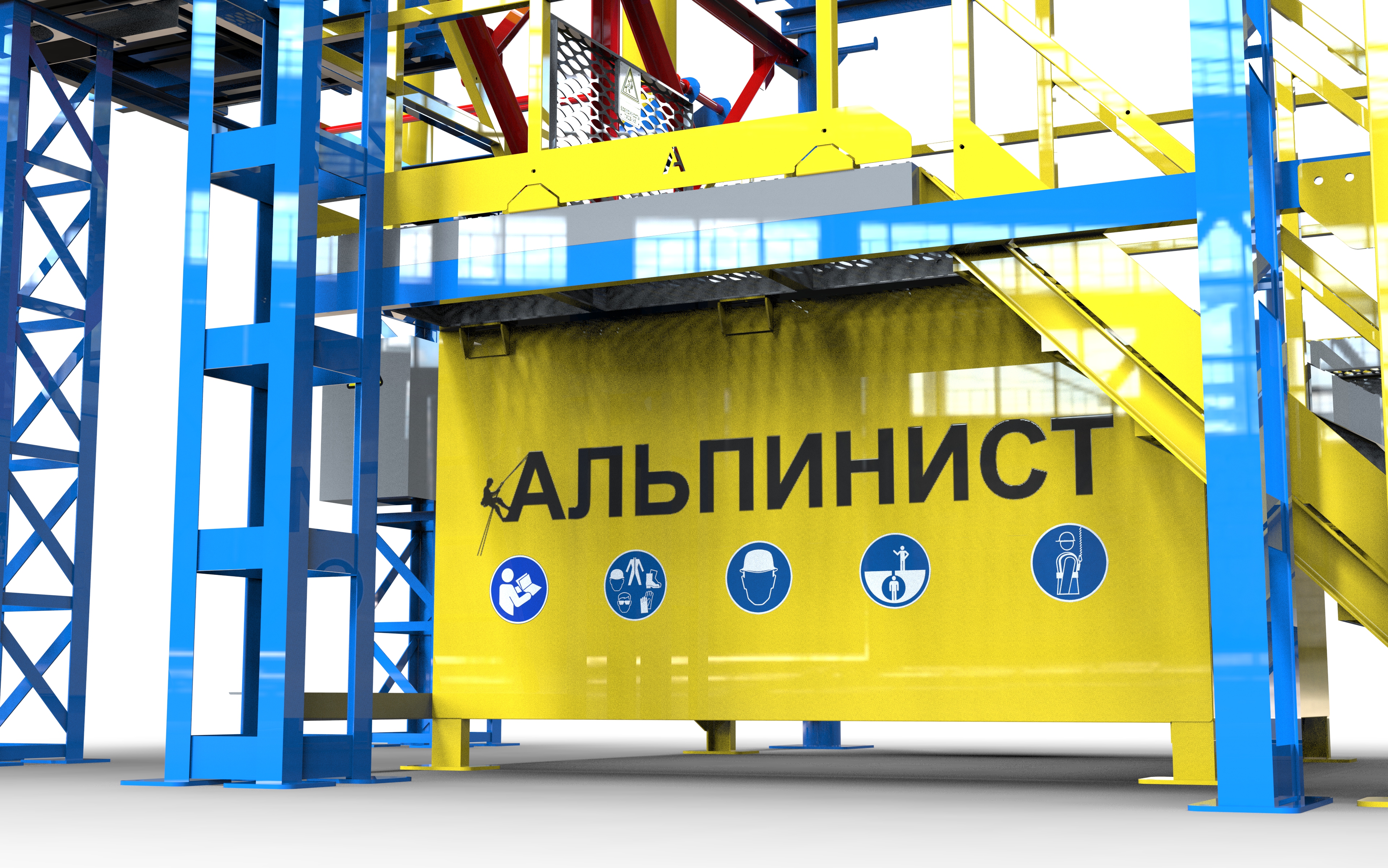 Данный тренажер имеет сборно-разборную конструкцию на болтовых соединениях, что обеспечивает легкость и удобство в сборке, демонтаже и транспортировке. Полигон спроектирован для демонстрации и отработки различных работ на высоте, а также для обучения правильному применению средств индивидуальной защиты (СИЗ).